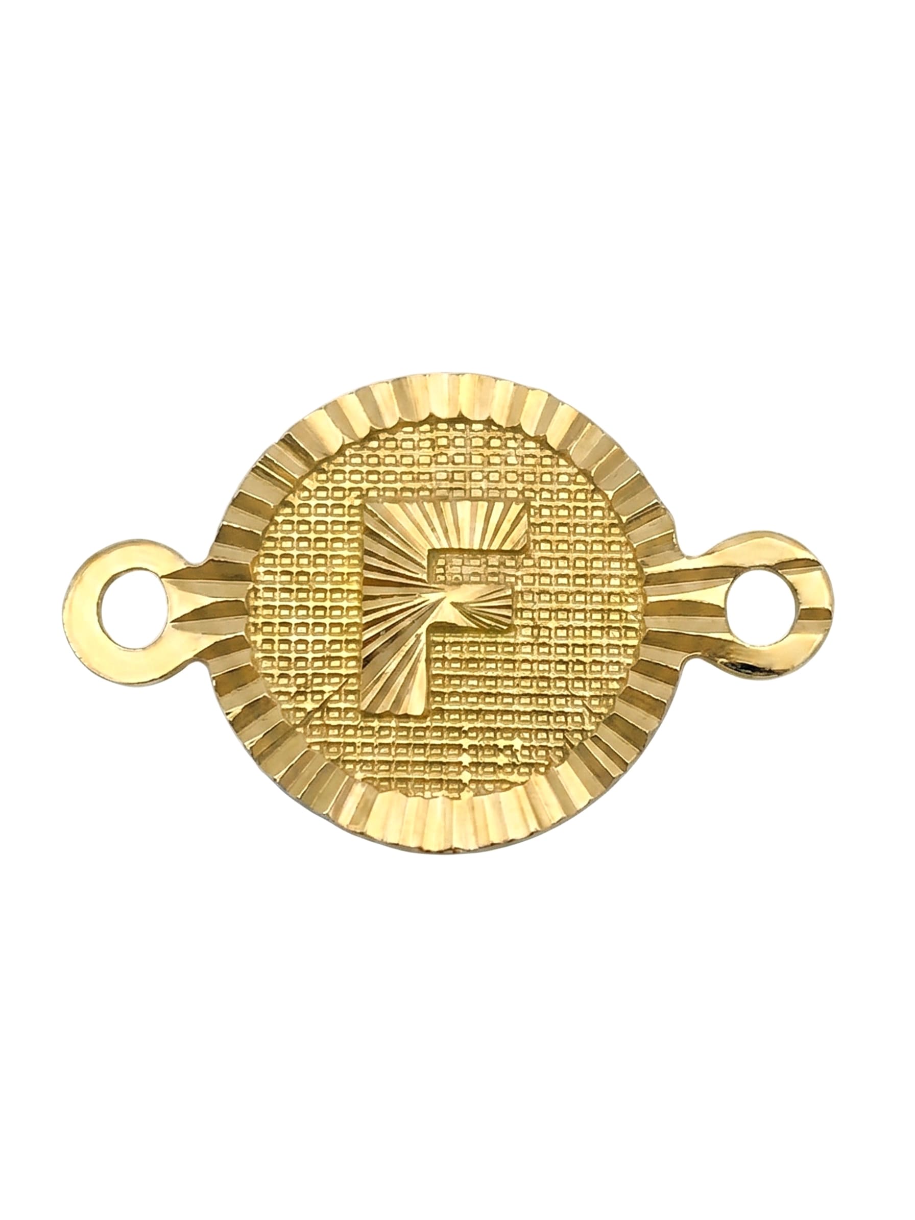 Eleva tus creaciones con este exclusivo aplique circular, una pieza maestra de joyería elaborada en auténtico oro de 18 kilates. Su diseño destaca por un exquisito tallado radial que nace desde una imponente inicial «F» central, creando un juego de luces y sombras que cautiva a primera vista.