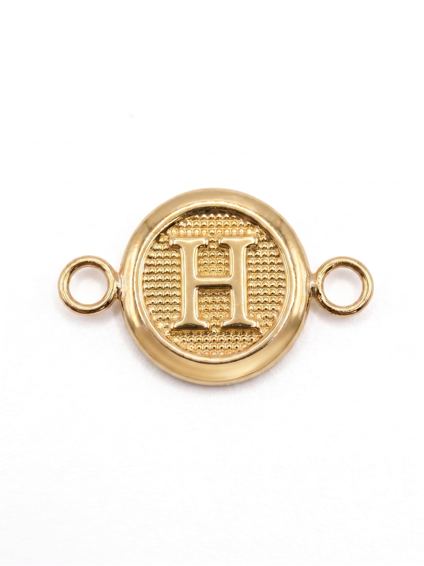 Lleva contigo tu esencia con este exclusivo aplique circular en oro de 18 quilates. Con un delicado relieve de la inicial ‘H’ sobre un fondo texturizado, esta pieza combina la artesanía tradicional con un diseño minimalista. El detalle perfecto para personalizar tu joya favorita con el brillo eterno del oro puro.