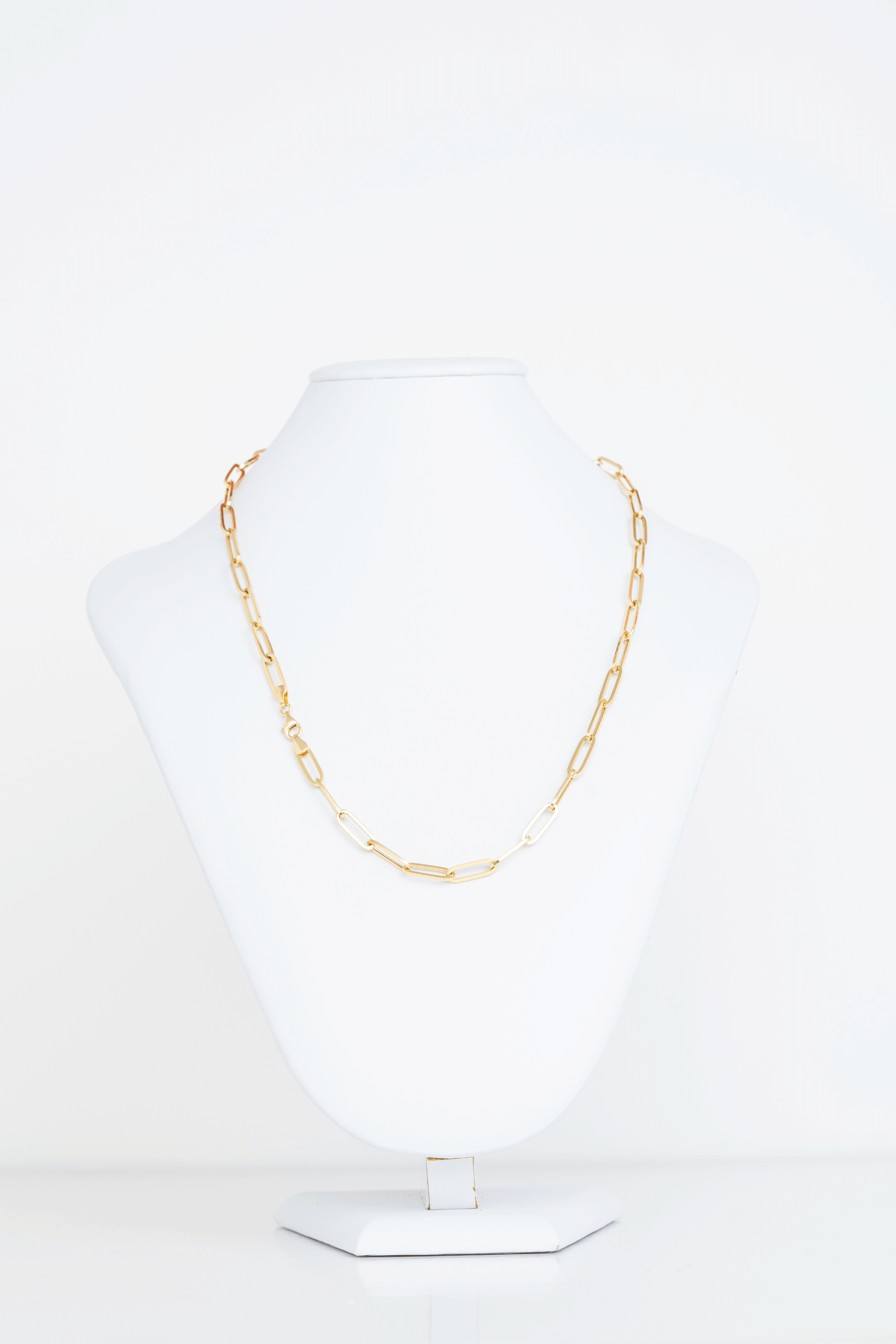 Elegancia atemporal y sofisticación europea se unen en esta cadena de oro italiano de 18 kilates. Con eslabones alargados tipo “paperclip” de acabado pulido, esta pieza destaca por su diseño moderno y refinado. Ideal para lucir sola o combinar con dijes, su ligereza y brillo natural la convierten en una joya versátil, perfecta para quienes valoran la distinción en los pequeños detalles. Un básico imprescindible en cualquier colección de lujo.