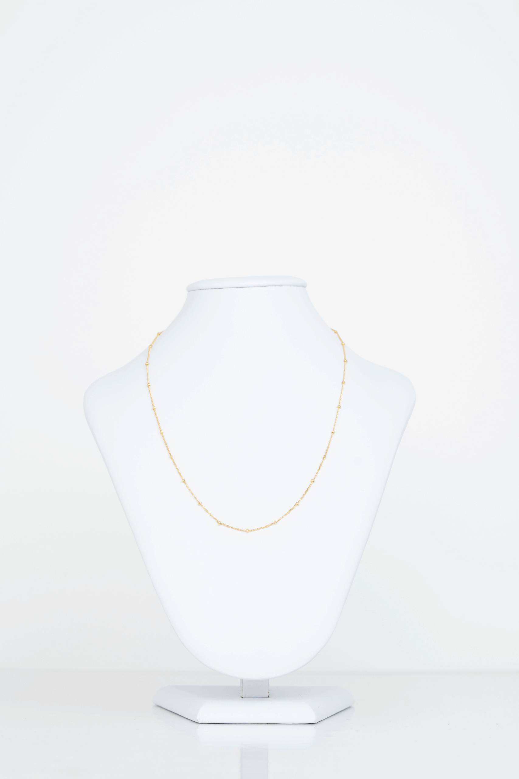 Elegancia sutil y estilo moderno se unen en esta delicada cadena de oro italiano. Su fino eslabón viene adornado con pequeñas esferas distribuidas a lo largo del diseño, aportando un toque de brillo y originalidad. Perfecta para usar sola o acompañada de un dije, esta pieza es ideal para quienes buscan sofisticación sin excesos. ¡Luce tu buen gusto en cada ocasión!