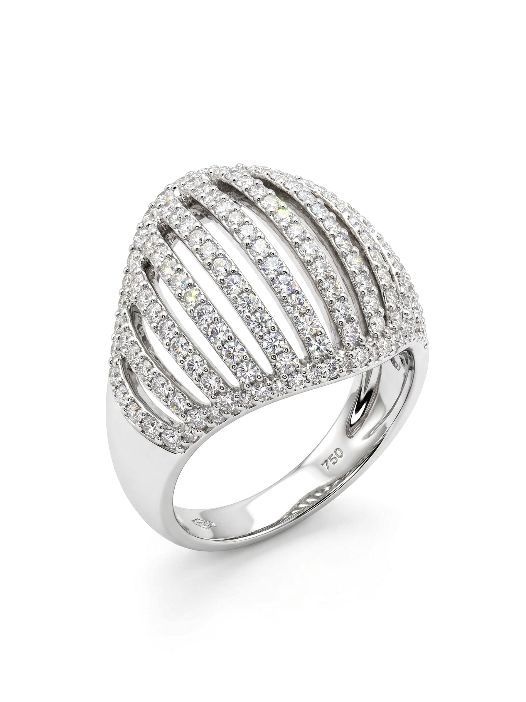 Anillo tipo rejilla en oro blanco, con 160 brillantes de 1 pt cada uno.