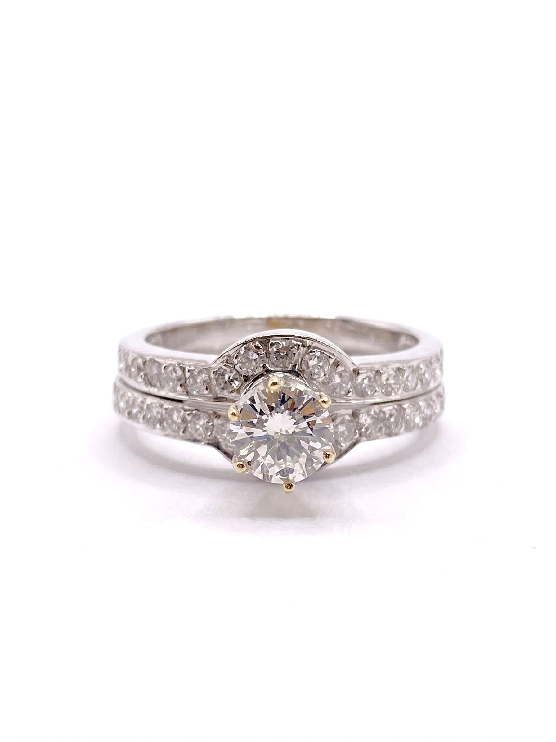 Anillo en oro blanco con un brillante natural de 60 pts y 34 brillantes de 2,5 pts.