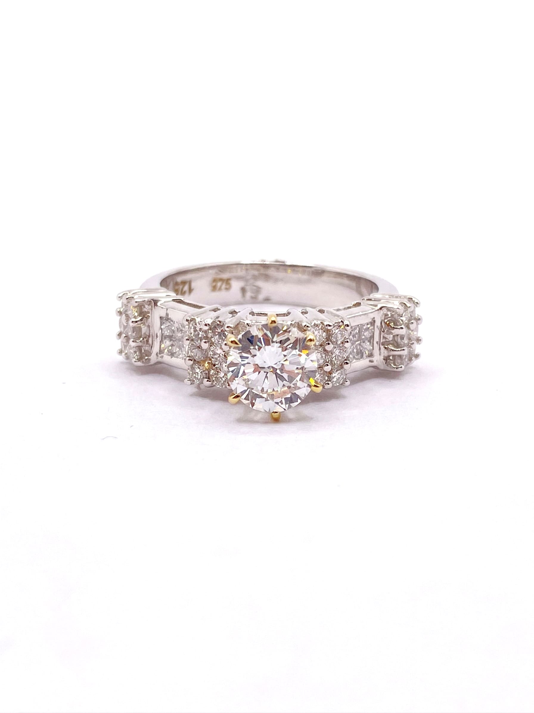 Anillo en oro blanco con un brillante de 1,02 ktes de 85 pts, grado G y 0.72 kilates de brillantes de 1pto.
