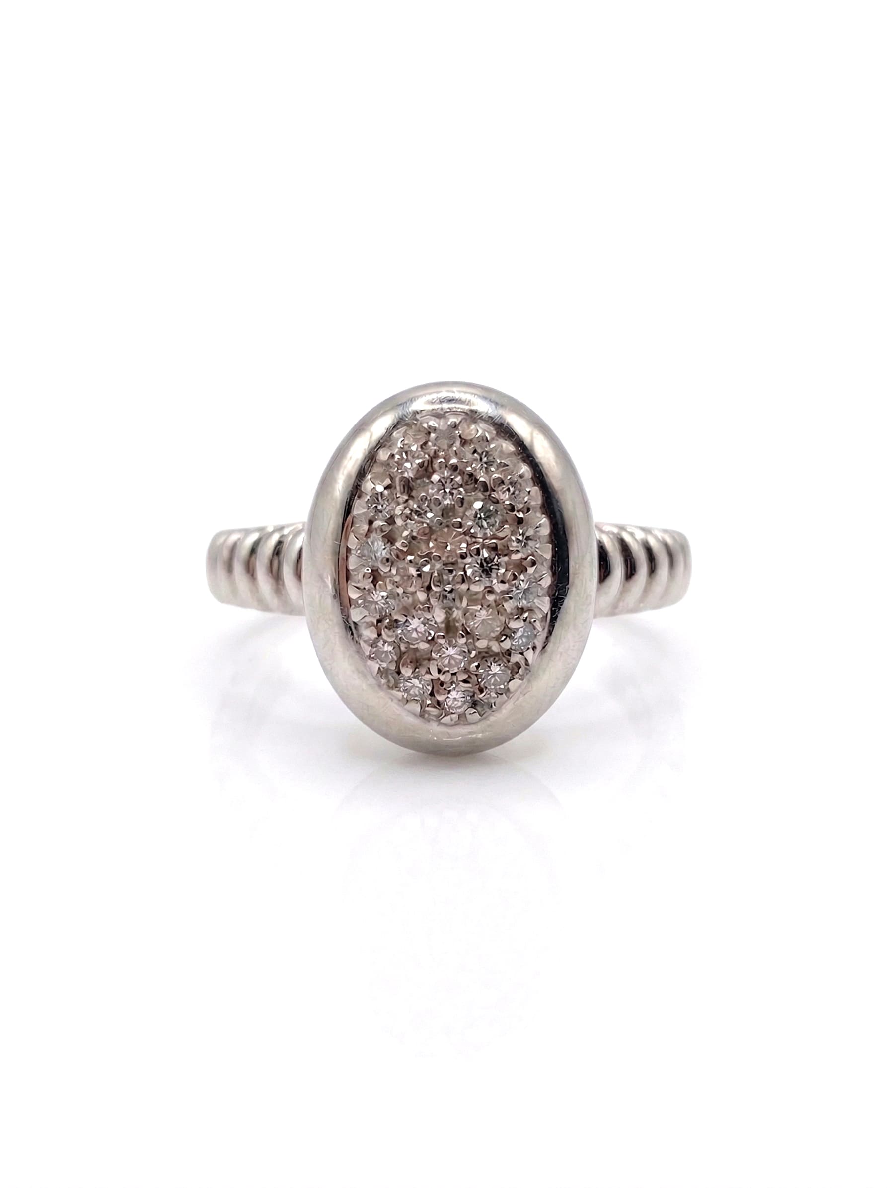 Anillo en forma de óvalo en oro blanco con 30 brillantes de 0,5 pts.