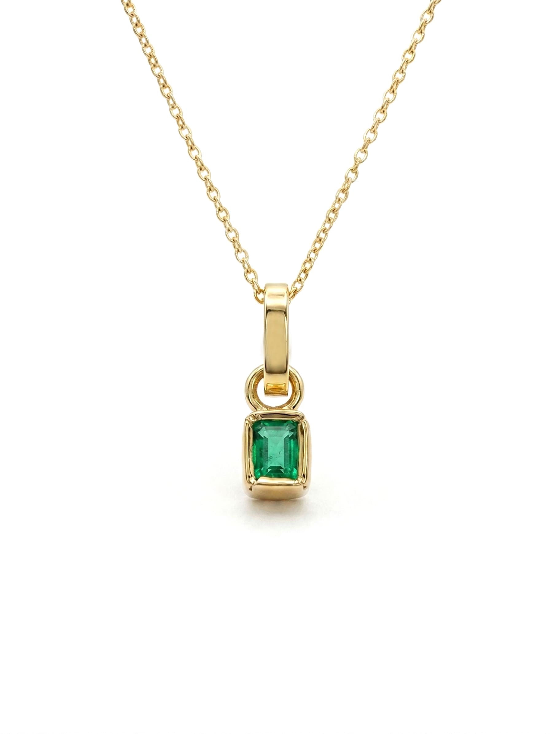 Dije en oro amarillo con esmeralda rectangular de 20 pts.