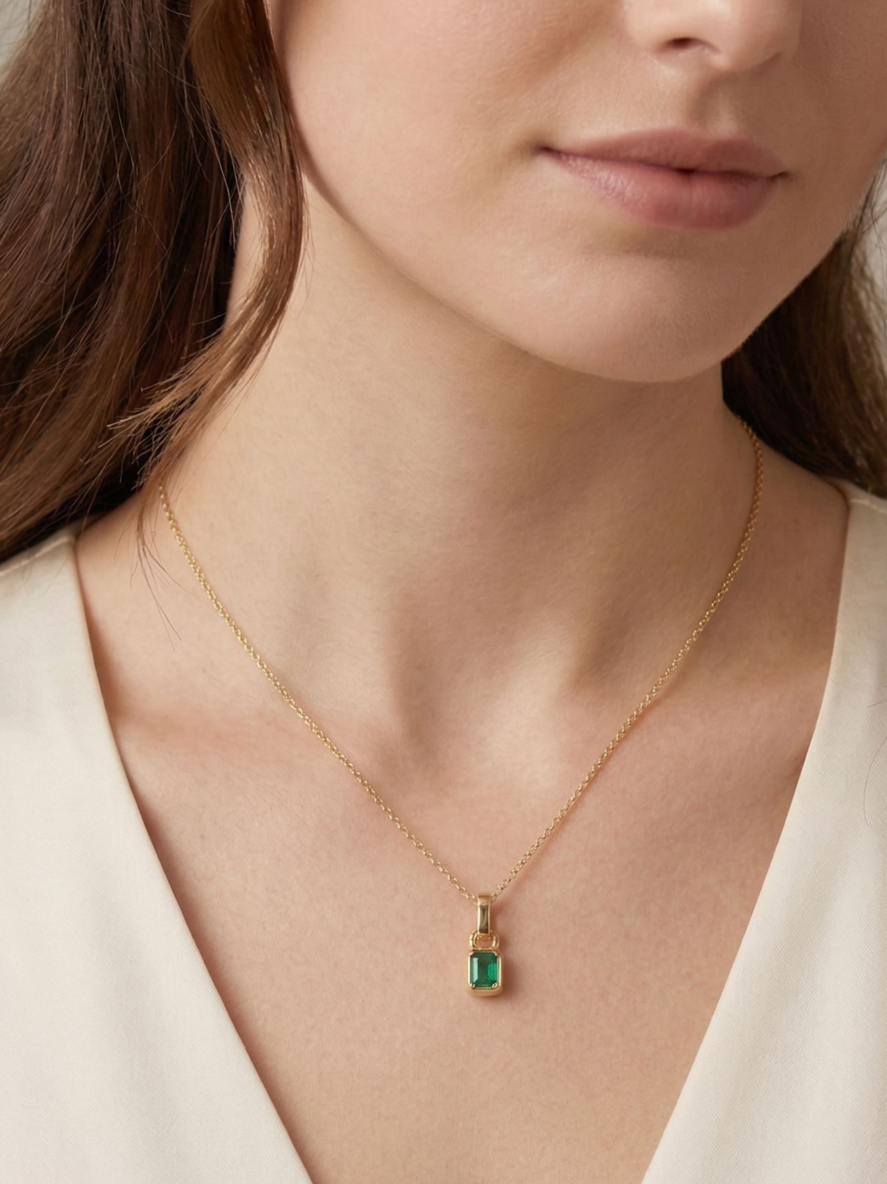 Esta delicada gargantilla en oro amarillo es el tributo perfecto a la sofisticación minimalista. En su centro, una vibrante esmeralda de corte esmeralda captura la luz con una intensidad hipnótica. Una pieza atemporal diseñada para quienes encuentran la máxima elegancia en los detalles más pequeños.
