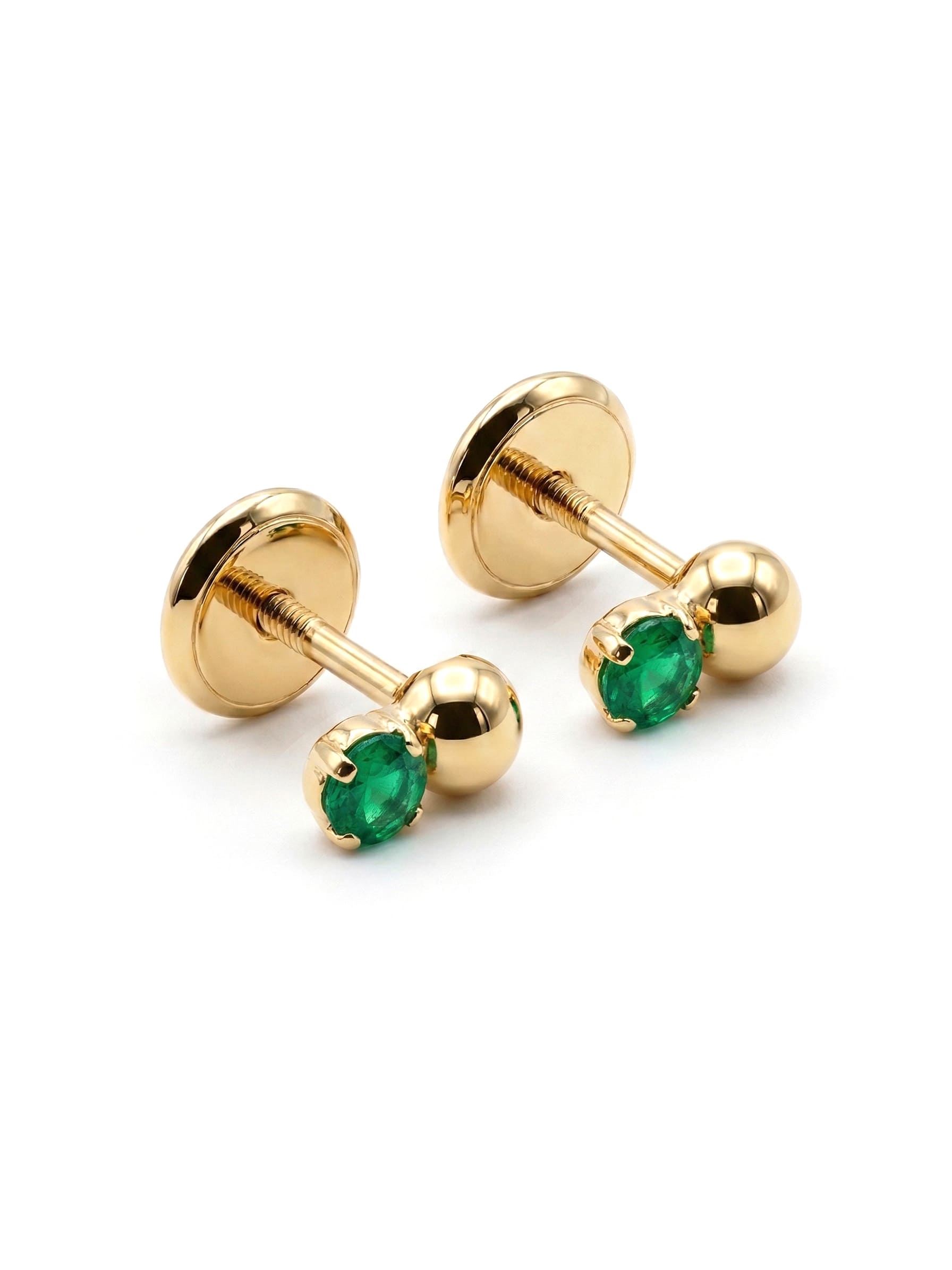 Topos en oro amarillo con esmeraldas naturales de corte redondo.