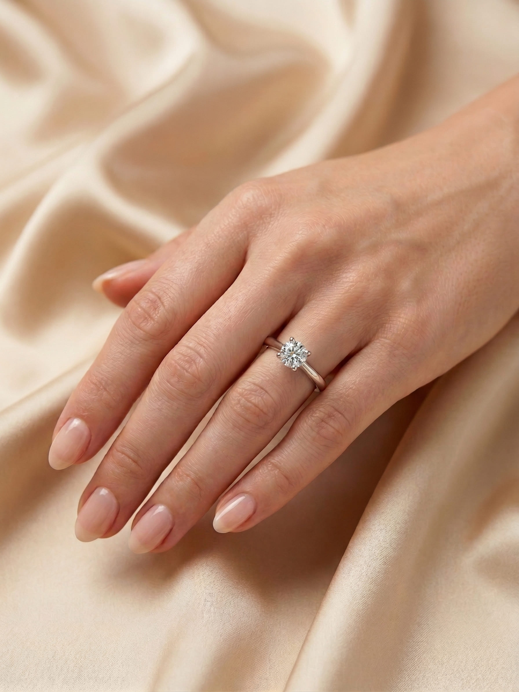 Un «Sí» para Toda la Vida Captura la esencia de tu historia de amor con este exquisito solitario. La sofisticación del oro blanco se funde con el brillo incomparable de un diamante central, diseñado para iluminar cada momento compartido. Una joya tan única y brillante como la promesa que representa.