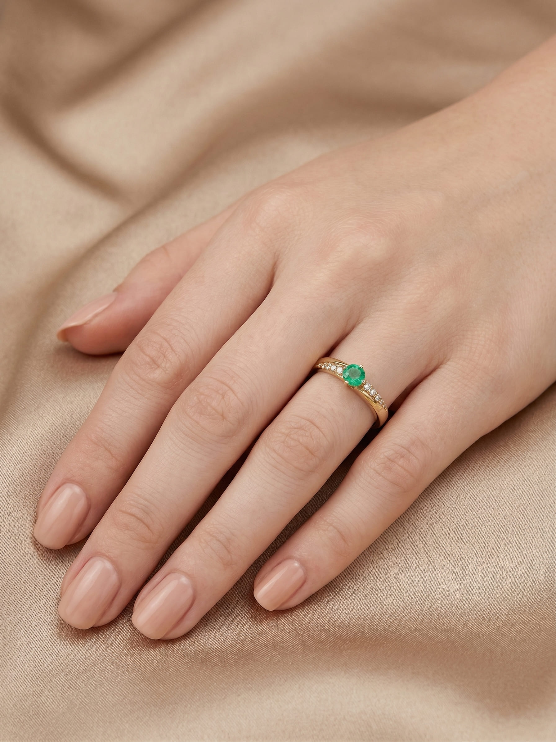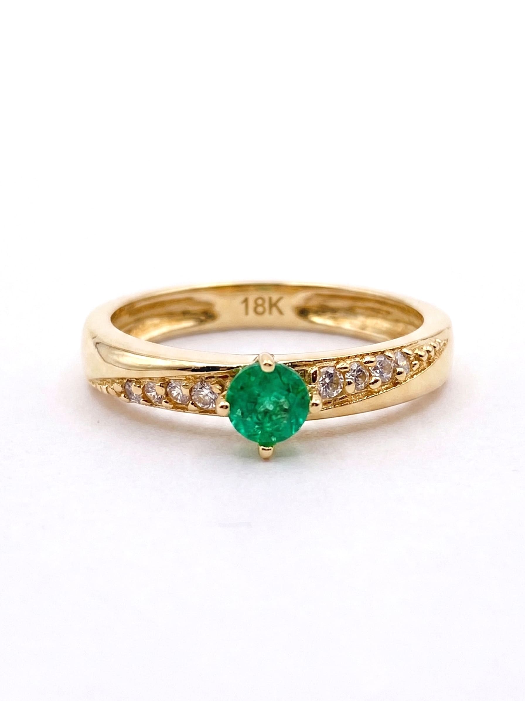 Anillo en oro amarillo con una esmeralda natural de 20 pts y 8 circones.