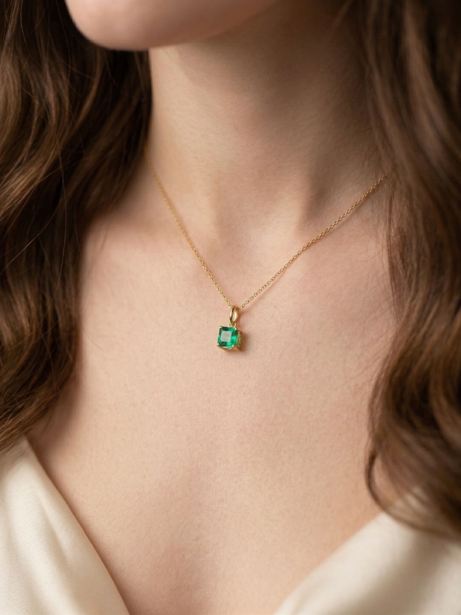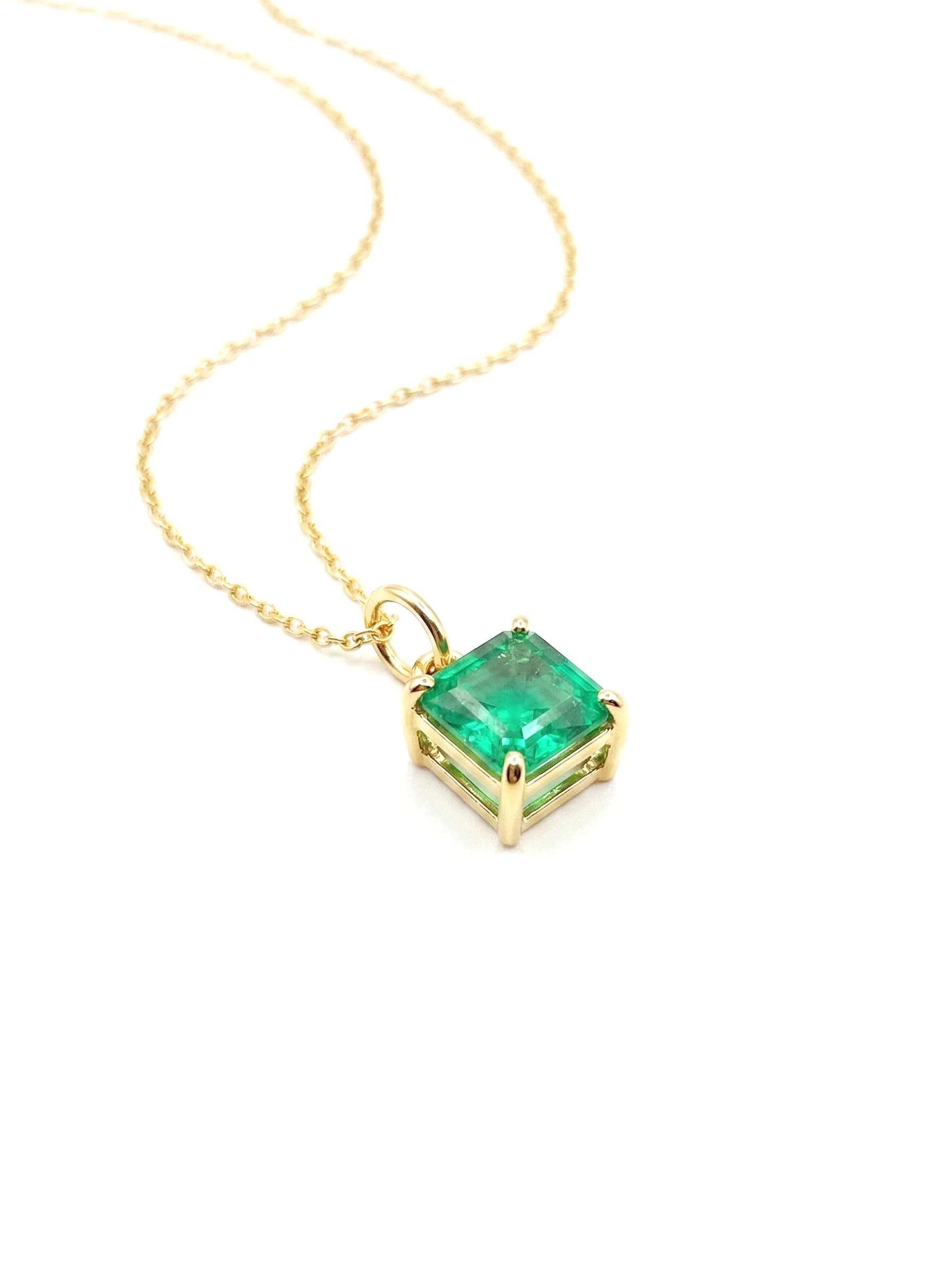 Dije en oro amarillo, con una esmeralda cuadrada de 20 pts.